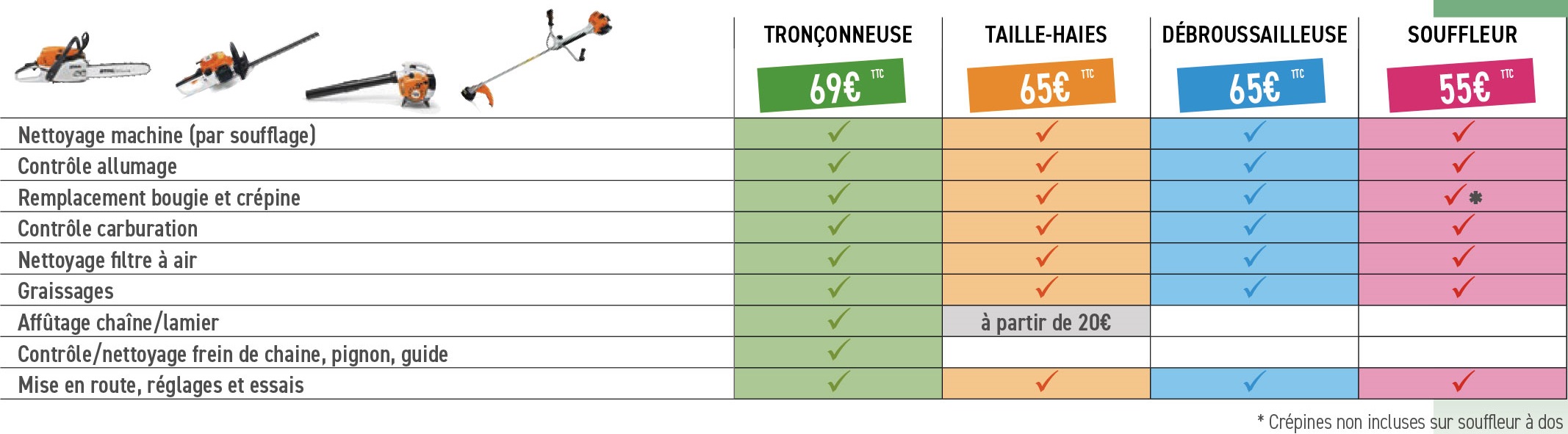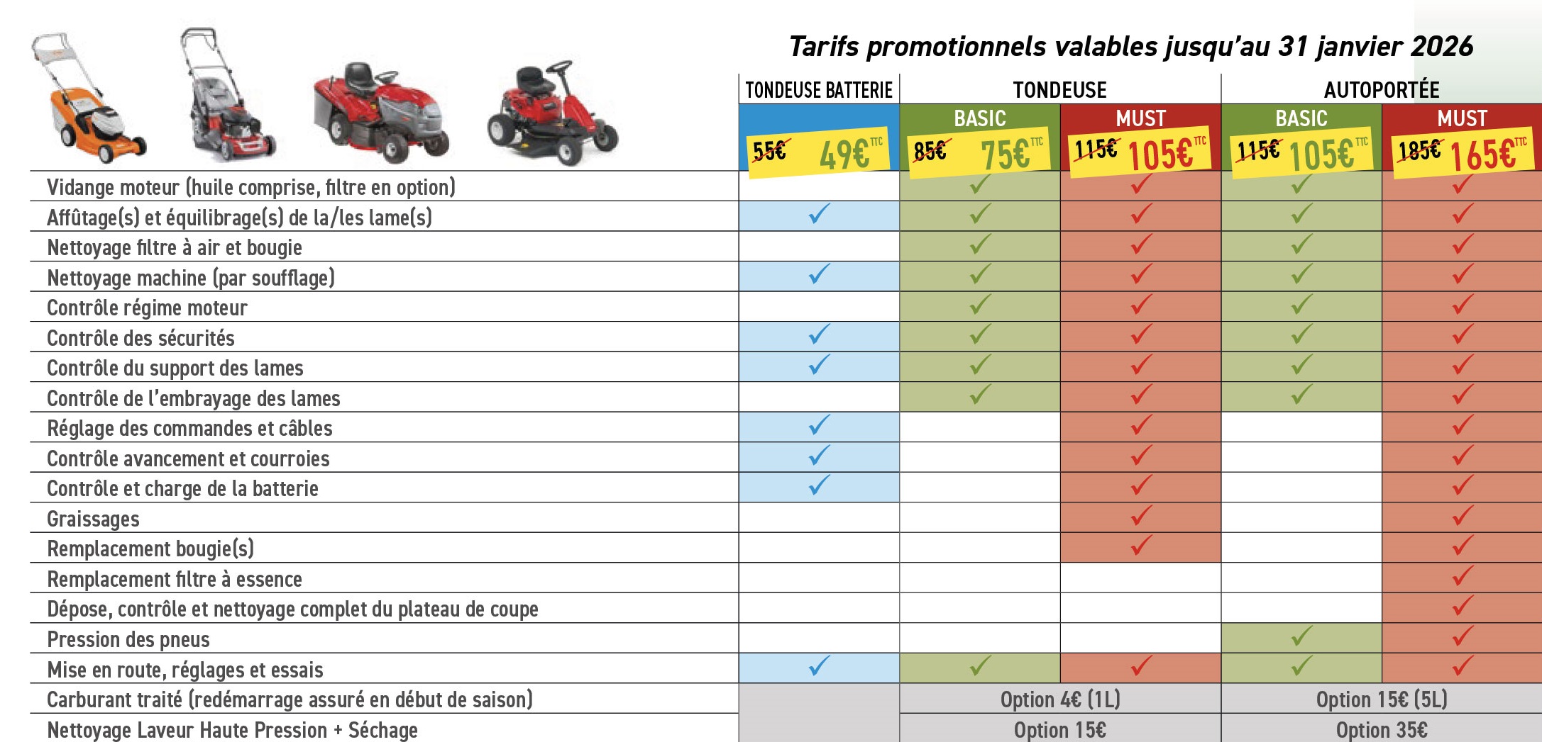 FORFAITS ENTRETIEN AUTOPORTÉES/TONDEUSES :